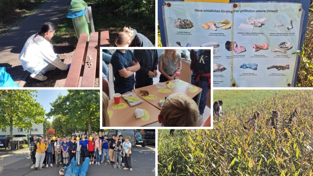 Die Klassen 5 befassten sich mit der Frage, wie unterschiedlich lange verschiedene Materialien brauchen, um zu verrotten. Besonders überrascht waren die Kinder, wie lange etwa Silikonreste in der Natur verbleiben. Bei ihrem Rundgang durch die Umgebung sammelten die Fünftklässler zahlreiche Abfälle – am häufigsten Zigarettenkippen. Irritierend für viele. Die Kippen lagen oft direkt neben Mülleimern, insbesondere an Parkbänken.
