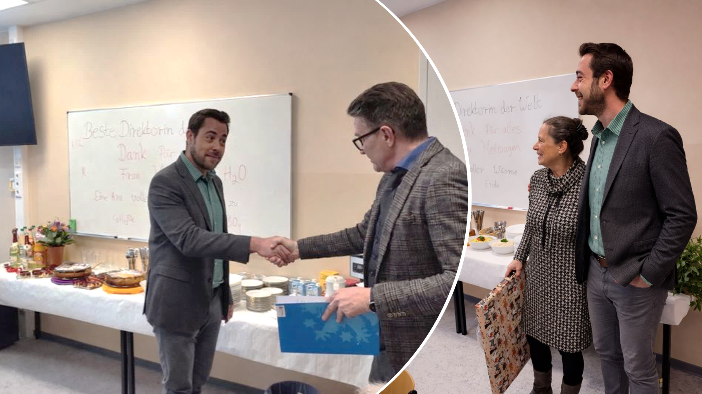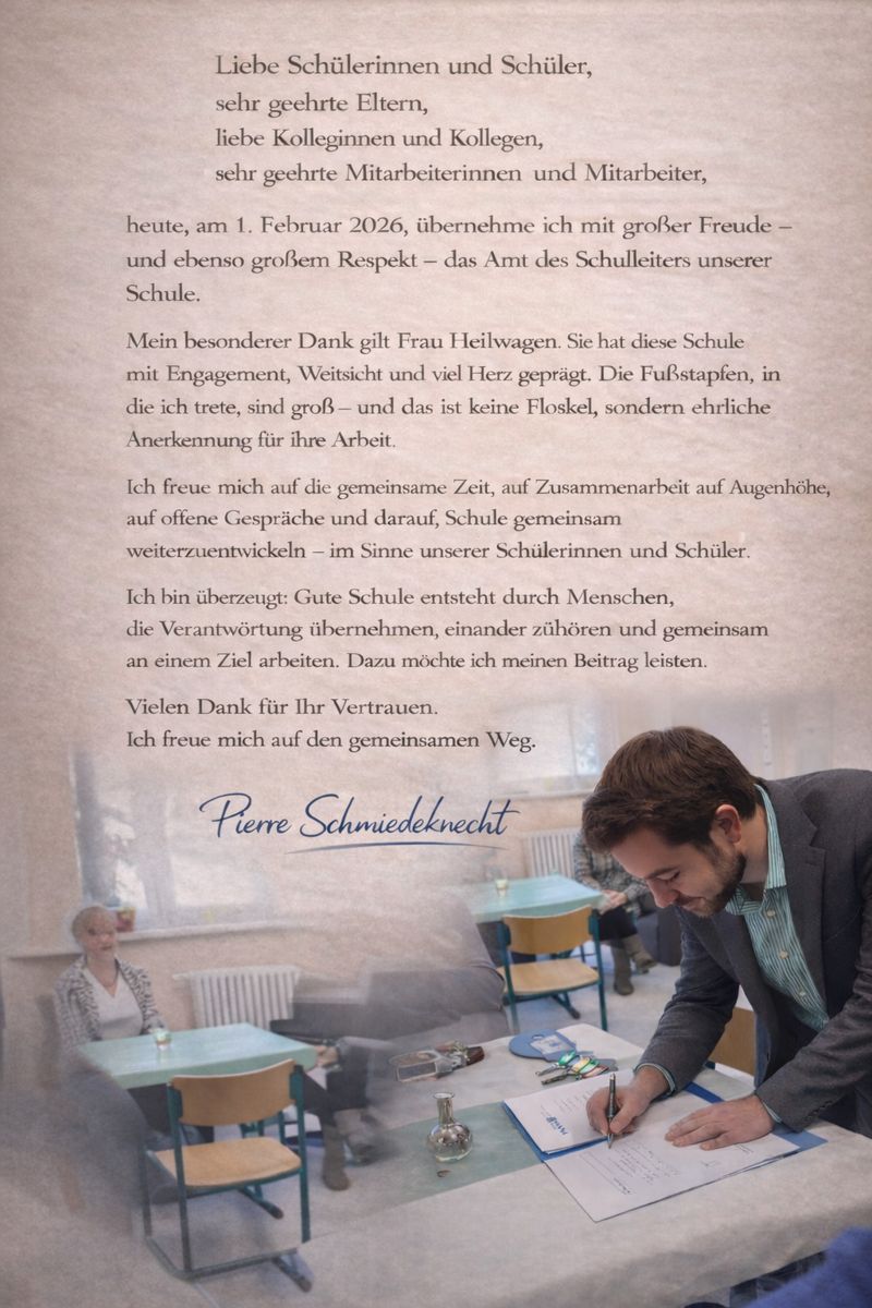 Den Auftakt bildete eine kurze Verabschiedung auf dem Schulhof, bei der die gesamte Schulgemeinschaft ihre Wertschätzung und Dankbarkeit mit Applaus zum Ausdruck brachte. Im Anschluss fand eine kleine Feier in der Schule statt, zu der zahlreiche Gäste, ehemalige Kolleginnen und Kollegen sowie langjährige Weggefährten gekommen waren.