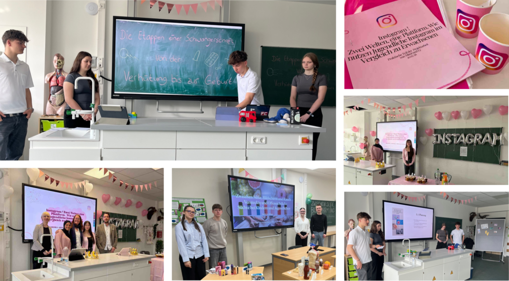 Darüber hinaus wurde die Rolle sozialer Medien am Beispiel von Instagram untersucht. Neben einem Vergleich zwischen Jugendlichen und Erwachsenen analysierten die Lernenden Chancen und Risiken der Plattform. Der praktische Teil bestand in der Erstellung und dem anschließenden Onlinegehen eines offiziellen Instagram-Accounts der Schule, wodurch die Schülerinnen ihre theoretischen Erkenntnisse direkt anwenden konnten und unsere Schule nun „Follower“ und einen Social Media Auftritt hat.