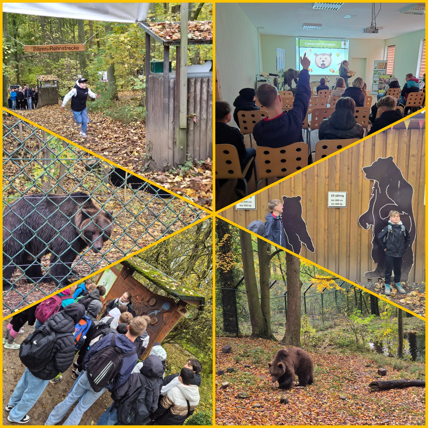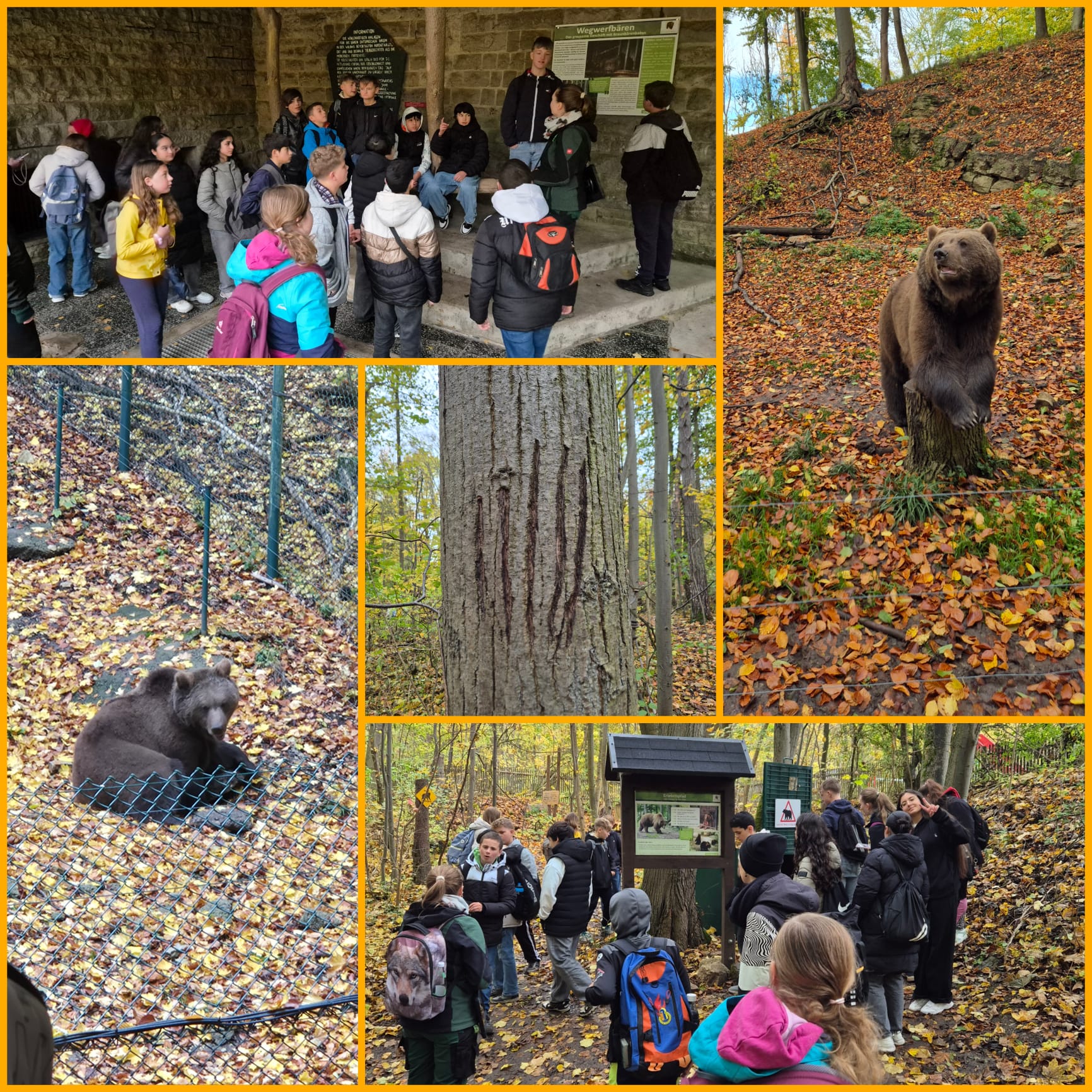 Am 23. Oktober 2025 unternahm die Klasse 7 einen Ausflug in den Alternativen Bärenpark Worbis. Die gesamte Klasse nahm an einem Forscherprogramm teil, bei dem sie viel über die Natur und das Verhalten der Tiere lernten. Die Bären, die noch nicht in die Winterruhe gegangen waren, konnten aus der Nähe beobachtet werden und die Klasse erfuhr interessante Dinge über deren Leben und ihre Rettungsgeschichten. Ein weiteres Highlight war der Wettlauf gegen einen „Bären“ – natürlich nur symbolisch, aber mit viel Spaß und sportlichem Ehrgeiz. Zur Stärkung gab es ein leckeres Mittagessen, bevor es mit der Entdeckungstour weiterging. Denn auch, wenn der Alternative Bärenpark kein Zoo oder Tierpark ist, gibt es dort viele unterschiedliche Tiere zu sehen.